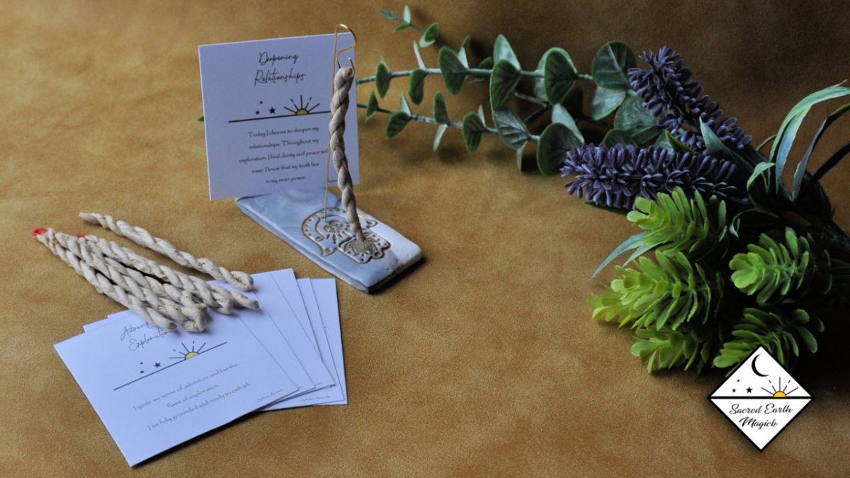 The tray also holds 7 mantra cards written by a Ashima Ananda. They provide a powerful focus for intention, guiding you toward deeper meditation and mindfulness.